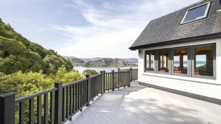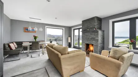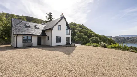 - A coastal house with separate cottage and bothy all with spectacular water and mountain views.