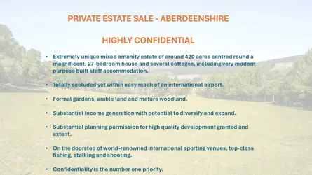 - Extremely unique mixed amenity estate of around 420 acres centred round a magnificent, 27-bedroom house and several cottages, including very modern purpose built staff accommodation.
