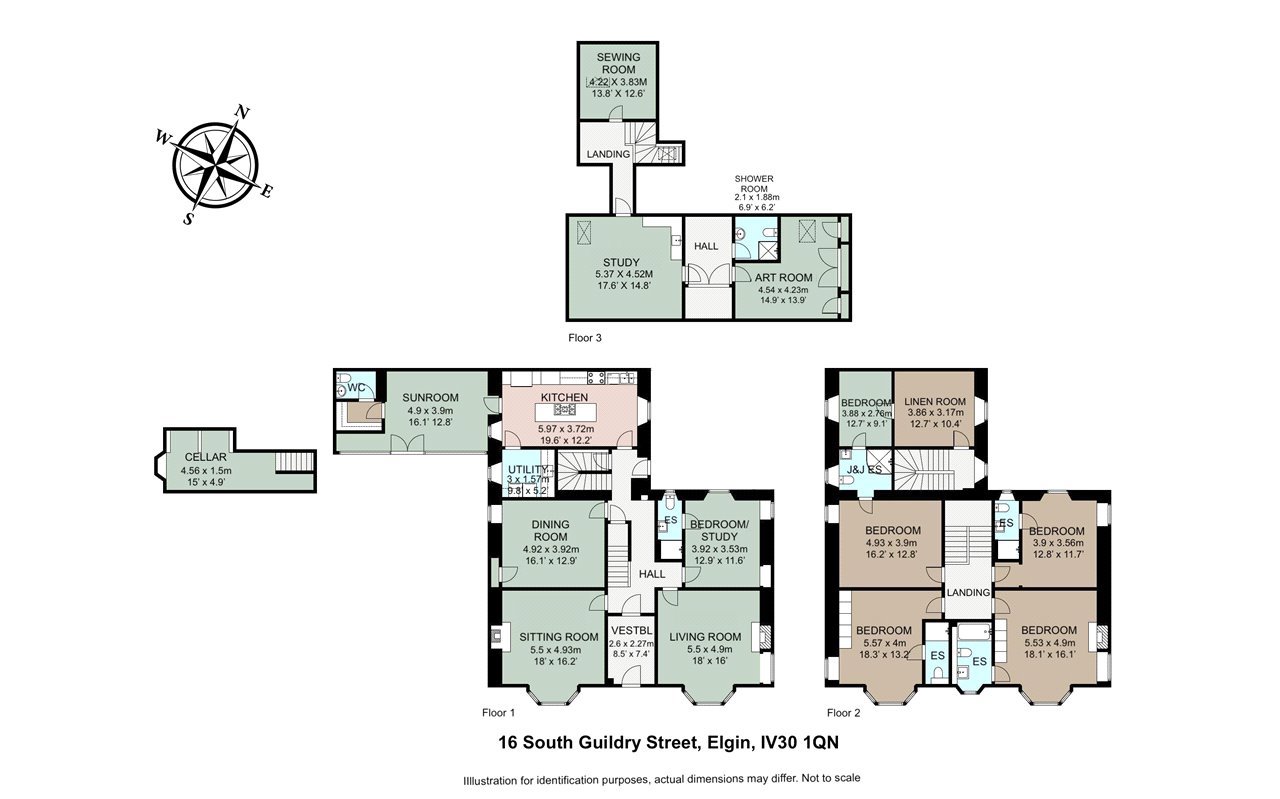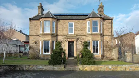 16 South Guildry Street is an exceptional town house located in one of the city’s most desired residential areas. With easy access to the town centre and in the catchment of West End Primary School and the Academy, South Guildry Street is widely regarded as one of the most sought after addresses in the area. Likely dating from the late 1800’s, the house occupies a fine south facing elevated position which commands far reaching views south to the Brown Muir and beyond. Constructed of stone under a slate roof, extensive (some 395m2) and very well appointed accommodation is provided over two and half storeys with 4 generously sized receptions rooms, 5 bedrooms and extensive ancillary accommodation that offers enormous flexibility and the opportunity to add to the bedrooms numbers if required.The house has many of the period features one would hope to find in a property of this age and character including tall, corniced ceilings, attractive fireplaces, hardwood flooring, deep set bay windows and an attractive staircase with a carved handrail and cast iron balusters to name just a few. The sitting room, living room and master bedroom are particularly appealing rooms whilst the kitchen is very well equipped with a range of wall and floor units, a two oven gas Aga and various integrated appliances. The house appears to be in excellent condition and is tastefully decorated throughout. It is double glazed (with relatively new windows and doors) and is heated using gas central heating. A 4kW solar array with battery storage ensures far improved energy efficiency. The property is connected to all mains services (water, foul drainage and gas).GARDENOutside, there is a generously sized enclosed garden, much of which has been monoblocked to provide ample parking space for up to seven vehicles. In addition, there are smaller areas of lawn, various borders and a wonderful, sheltered patio which is a fantastic sun trap with access into the sunroom adjacent. There are several useful outbuildings which in addition to providing superb storage space, provide scope for development (subject to obtaining all necessary consents). These include two single garages, a bike shed, potting shed and loft storage.