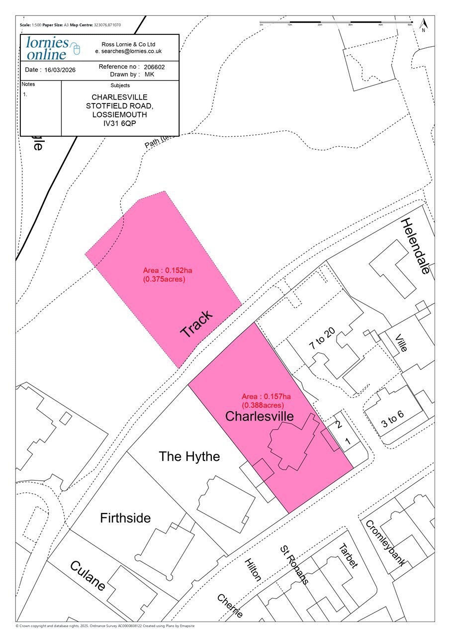Charlesville is a wonderful, detached town house occupying one of the most desirable positions on Stotfield Road and indeed across the whole of Moray. Sitting back from the main road and positioned within a generously sized enclosed garden, Charlesville enjoys a stunning and uninterrupted outlook over the Moray Firth and out towards the distant hills of Sutherland. Constructed of stone under a slate roof, the house provides very well appointed and spacious accommodation over two storeys. On the ground floor, there is a generously sized, sitting room, dining room and library / 5th bedroom in addition to a well equipped kitchen, sun room / conservatory, a cosy snug, utility room, boiler room, shower room, a useful store room and a WC /cloak room. On the first floor, a half landing leads to the family bathroom whilst from the main landing, doors lead to a box room, study and four bedrooms. The house has a wonderfully bright and airy feel with many of the period features one would hope to find in a property of this age and character including tall, corniced ceilings and open fireplaces. With deep set bay windows, the dining room, sitting room and master bedroom are particularly impressive rooms whilst in general the house offers enormous flexibility. It is double glazed and is connected to all mains services with gas central heating.GARDENOutside, the extensive garden is enclosed by a stone wall ensuring it is largely safe and secure for pets and smaller children. With areas of lawn and a variety of mature shrubs and plants, the garden provides a wonderful green space from which to enjoy the very scenic outlook. A direct access can also be taken to the open heath and west beach to the front. There is a very useful garage and outbuildings (workshop) whilst parking for several vehicles is available on a private driveway.LOCAL DEVELOPMENT PLANThe foreshore to the sea front of the house is designated as a natural / semi-natural green space in the current local development plan. This land is owned by the owners of Charlesville.