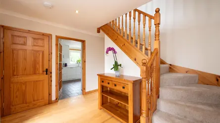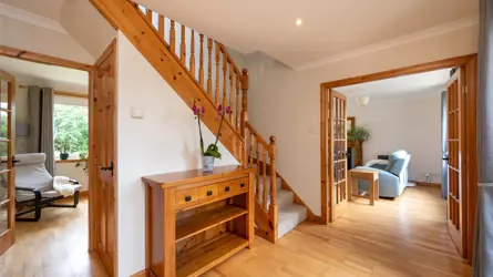 SITUATIONThree Springs Cottage has a peaceful rural location and is within comfortable commuting distance of Edinburgh. The small group of houses at Kirkhill lie approximately half a mile to the east of Legerwood. Local amenities are found in each of Earlston (5 miles) and Lauder (7 miles) and Earlston High School is one of the highest performing secondary schools in Scotland. A wider range of amenities is found in each of Melrose and Kelso and the A68, which links Edinburgh with the northeast of England. In addition, the Tweedbank Terminal for the Borders Railway, with its regular train service to Edinburgh, lies within easy reach.The Scottish Borders as a whole is renowned for spectacular scenery and the area offers numerous outdoor pursuits with a plethora of activities including country walks, cycle routes, fishing on the nearby River Tweed, horse riding and shooting. A popular location for the commuter and an ideal opportunity to enjoy all country life has to offer.DESCRIPTIONThree Springs Cottage is an impressive, modern detached property built approx.2004 and has been thoughtfully designed to provide fantastic family living space over two levels. The house is approached from a chipped driveway which leads up to the main entrance and double garage. The property extends to about 185 sqm and benefits from many fine features including hard wood flooring and quality doors.The stylish open plan dining kitchen/sun room provides the heartbeat of the home, with that open plan/sociable aspect that many desire. The kitchen offers a good range of modern base and wall-mounted units and integrated appliances. The French doors that open out from the sun room to the rear patio area, enhances an attractive inside/outside atmosphere. The lounge has a wealth of natural light with stove and French doors to the private rear garden. There is a useful utility room with internal door leading to the double garage.Ascending the timber staircase, the upper floor has four good sized bedrooms with excellent built in wardrobe space, family bathroom and principal bedroom offering a spacious en-suite bathroom.The property benefits from solar panels, double glazing, oil fired under floor heating and integral double garage.ACCOMMODATIONGround Floor: Entrance hallway, sitting room with French doors, snug/bedroom five, WC, Utility room, open plan dining kitchen & sun room, under stair cupboard, integrated double garage.First Floor:Staircase, landing, four double bedrooms, one en-suite bathroom, family bathroom with separate shower cubicle, spacious airing cupboard and hatch to attic space with Ramsay ladder.GARDEN AND GROUNDSThe garden and grounds of Three Springs Cottage are particularly generous extending to approximately 1/4 acre and have been meticulously cared for over the years. The rear garden offers a good degree of privacy with lawn, patio seating area , secluded woodland area and garden pond. There are various raised flower beds, fruit bushes and a greenhouse, a dream for any keen gardener. The house is approached by a private stone chipped driveway, offering parking for three vehicles and a double garage with electric doors and power supply.DIRECTIONSFrom Lauder head south on the A68, taking the fourth road on your left after approximately 4 miles. This road is signed “Legerwood”. Follow the minor road to Legerwood, continuing east at the crossroads and heading uphill to Kirkhill. Three Springs Cottage lies on your right.WHAT3WORDSTo find this property location to within 3 metres, download and use What3Words and enter the following 3 words: social.diver.dynamics.POST CODETD4 6AT