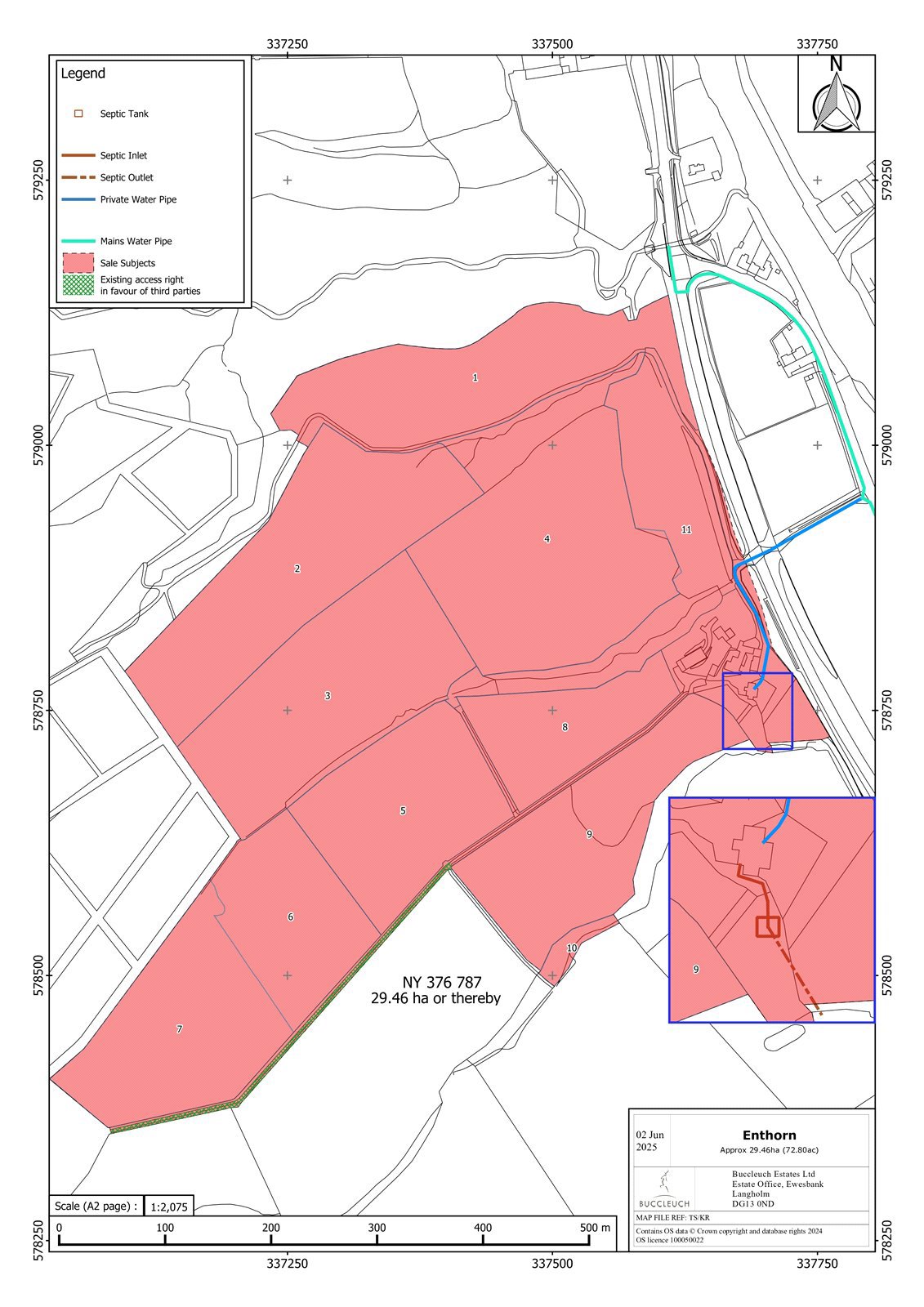 GENERALEnthorn lies in an excellent rural location at the end of a short private road just off the A7 trunk between Canonbie and Langholm. The nearby village of Canonbie, only a mile from the border with England, benefits from a well regarded primary school with nursery facilities.Other local amenities include a Health Centre, Post Office/convenience store, village hall, recreation ground, church, hairdresser and hotel. The River Esk is well known for salmon and sea trout angling.Both the M6 and A74(M) motorways are within easy reach. Around 12 miles distant, Carlisle is the nearest cultural, commercial and industrial centre for the area. The city has good rail links to London (3.5 hrs), Glasgow (1hr) via the West Coast Main Line and to Edinburgh (1hr 15m).DESCRIPTIONEnthorn comprises a handsome farmhouse with a range of farm buildings, grazing land and a small area of woodland.FarmhouseThe traditional farmhouse sits in an elevated position with an easterly aspect. The house looks out over the stunning Eskdale landscape. The spacious house comprises nicely proportioned rooms and is in need of modernising throughout.Ground Floor: sitting room, dining room, kitchen, back kitchen, pantry, utility roomFirst Floor: 4 bedrooms, family bathroomThere is a small integrated wash house on the south side of the house that was latterly used as a garden store. A pretty garden lies to the front of the house. It is sloping in places and mostly laid to lawn. There is also an enclosed area to the south west of the house that may have been a kitchen garden/orchard at one time.Farm BuildingsThe buildings lie to the north west of the farmhouse and are both traditional and modern.Range of traditional buildings. Now requiring upgrading.Stone barn. Slate roof and stone floor. There is a granary and hoist within the stone barn.Cattle shed. Concrete blocks with partial Yorkshire boarding. Feed Barrier. Earth floor.Workshop, prefabricated concrete with concrete floor. Electric points and water supply.Hayshed. Open sides with corrugated sheet roofing.Slatted shed.The LandThe fields at Enthorn extend to approximately 25.35 hectares (62.63 acres) and are classified as Grade 4.2 on the Land Capability for Agriculture 1:50 (Scotland Map). The land is a ring-fenced unit lying to the north and west of the farm house and buildings. It is currently divided into 9 main enclosures.There is an excellent access track leading up through the farm giving direct access to 5 of the fields. The fields are of a good practical size and divided by recently refreshed wire fences. All fields have access to water, either a natural supply or by water troughs. There are mature hedges on either side of the access track plus some of the fields.There is one area of woodland on the farm. It is predominantly traditional hardwood trees and shrubs. A second track leads up the side of the woodland and gives good access to the fields lying on the northern part of the farm.There is a grazing lease in place until 31st July 2025IACSAll the farmland is registered for IACS purposes, the grazier is currently claiming subsidies on the landBASIC PAYMENT SCHEME (BPS) 2019Basic Payment Entitlement was established on 15th May 2015. Further details of the Basic Payment Entitlement are available from the Selling Agent.Any payments relating to the 2025 scheme year will be retained by the Seller. If applicable, the purchaser(s) will be responsible upon occupation of the subjects of sale to comply fully with the Statutory Management requirements to maintain the farmland in Good Agricultural and Environmental Condition (GAEC) as laid down under the Cross Compliance rules of the Basic Payment Scheme (BPS) 2025 for the remainder of the scheme year.LESS-FAVOURED AREA SUPPORT SCHEME (LFASS)All of the land has been designated as being within a Less-Favoured Area.MINERALSThe mineral rights are included.TIMBERAll fallen and standing timber is included in the sale as so far as it is owned by the seller.SPORTING RIGHTSIn so far as these rightsACCESS/THIRD PARTY RIGHTS OF ACCESS/ SERVITUDES ETCExisting access rights in favour of third parties hatched green on the sale plan.