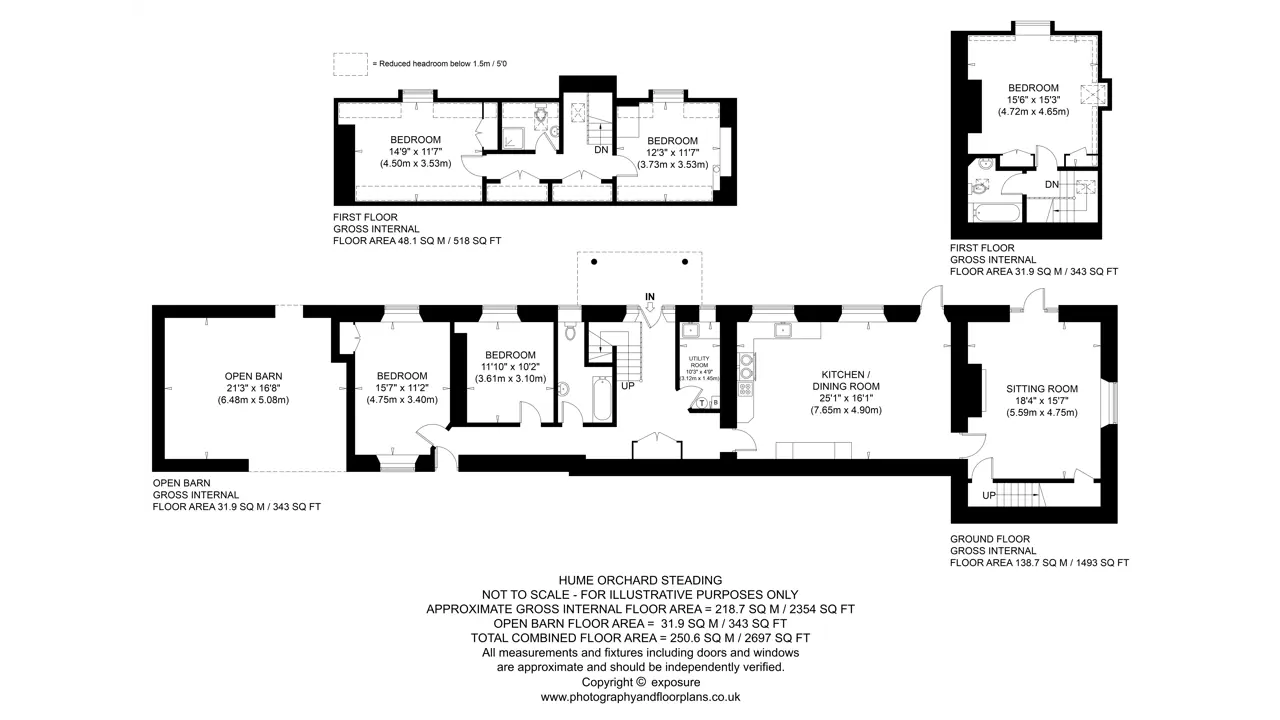 SITUATION Hume Orchard Steading is situated in Hume, approximately 6 miles from Kelso and 15 miles to Duns. Kelso is one of the most attractive and unspoilt towns in the Borders and offers good educational and sporting facilities as well as a vast array of independent shopping opportunities. The area offers plenty outdoor pursuits, including walking, cycling as well as fishing on the Tweed and Teviot. Added to the enviable quality of life, this area is easily accessible with good road links Edinburgh and Newcastle-Upon-Tyne as well as the mainline east coast railway station at Berwick -Upon-Tweed. The Borders railway line from Edinburgh terminates at Tweedbank, Galashiels, which is 17 miles away. DESCRIPTION Nestled in the tranquil countryside, this converted farm steading offers a perfect blend of rural living and modern convenience. Boasting five bedrooms, this property is ideal for families seeking a peaceful retreat. The house features off-street parking and a garage, ensuring ample space for vehicles. The well-maintained garden provides a serene outdoor space to relax and unwind. This period property exudes character and charm, with original features adding to its appeal. Additionally, an outbuilding offers versatile space for various purposes, while the paddock facilities cater to animal enthusiasts. Whether you're looking for a peaceful family home or a countryside getaway, this property is sure to impress. Hume Orchard Steading property is currently being used as a holiday let and has obtained the customers choice award for the last 5 years. Located in picturesque Hume with views of rolling countryside, the steading sits within a 5-minute walk to Hume Castle, and benefits from being 6 miles from the lovely town of Kelso. The versatile property is in turn-key condition but has scope for future development if wanted. ACCOMMODATION Ground Floor: Entrance hallway, utility room, kitchen/dining room, lounge, family bathroom, 2 double bedrooms.First Floor: 3 double bedrooms, family bathroom, shower room.GARDEN (AND GROUNDS) Hume Orchard Steading benefits from a gravelled driveway, private front garden and rear enclosed garden. A detached garage sits next to the drive. The Old Dairy lies just off the roadside and has had previous planning to be converted into a second dwelling with its own rear garden. A field and separate paddock hug the buildings and span across 2.5 acres providing lovely country views.