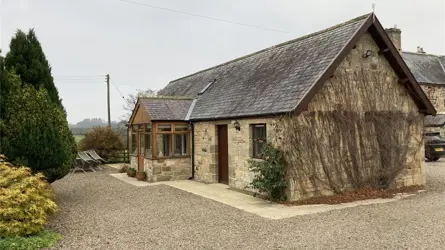 A charming one-bedroom cottage to let situated above the banks of the River Coquet. This well-appointed and proportioned cottage provides a spacious and light living space. It has recently been redecorated and benefits from a well-presented and equipped kitchen. There has also been a recent top up of insulation. Externally it has a west-facing, gravelled garden with flower beds and parking for 2 cars. Heating is fed from a shared bio-mass boiler system with individual thermostats in each room. Heating and electric are recharged via check-meters. Water charges are included in the rent. The nearby River Coquet affords some very pretty walking nearby and there is the potential for a fishing licence by separate negotiation.Kitchen and Diner - 6.06m by 4.77mA spacious, open-plan kitchen diner with vaulted ceiling and exposed timber beams benefitting from electric hob and oven, built-in fridge and dishwasher and a dining area.Living room - 4.68m x 3.45mA spacious room with vaulted ceiling and exposed timber beams. Utility - 1.81m x 1.58mThe newly-fitted utility benefits from a wc, sink, worktops and space for washing machine & dryer.Bedroom (4.65m x 3.47m) with ensuite (1.78m x 1.6m)A double bedroom with ensuite containing wc, shower, sink and heated towel rail.PorchA light and welcoming entrance porch mostly glazed with useful timber bench storage units.Mileages:Longframlington 1.5 milesMorpeth 12 milesAlnwick 11.5 milesNewcastle 26 milesRent:£725 pcmViewings strictly by appointment only through Galbraith Morpeth 01670 331500 or morpeth@galbraithgroup.com