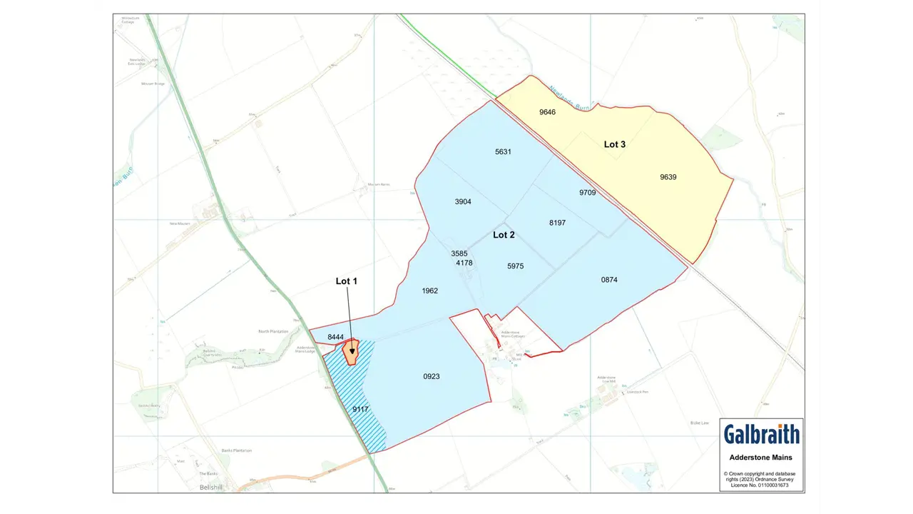 CLOSING DATE FOR OFFERS: 12 NOON ON WEDNESDAY 4TH OCTOBER 2023DESCRIPTIONAdderstone Mains Farm is a highly productive, mainly arable holding extending to around 397.02 acres (160.67 ha) situated on the edge of the North Northumberland Coastal Plain, an area known for the high quality of its farmland and yield potential for combinable crops.The farm lies between 30m and 83m above sea level and enjoys good access from north and south. The farm slopes gently down to the east, meaning that it enjoys striking views of Budle Bay and other parts of the Northumberland Heritage Coast.Belford, with its well known Coastal Grains co-operative grain facility, lies around 2 miles to the north, with Alnwick around 13 miles to the south. Berwick upon Tweed, with its wide range of services, including commercial grain handling facilities, maltings and Berwick Dock, is around 17 miles to the north. The farm is well shaped and easily accessed via the A1 Road, which forms the western boundary of the holding.The farm includes Chapeltrees, a four bedroomed farmhouse enjoying sweeping views to the east.Budle View, a further dwelling of log cabin construction, is located towards the centre of the farm. In addition, planning consent has been obtained for a further, four bedroomed farmhouse nearby. A particular feature of the farm is the excellent farmstead, which is centrally located on a virtually level site and which includes a range of entirely modern buildings, including a number of general purpose buildings and specialist pig accommodation.Adderstone Mains Farm is a rare property in being known for its productivity and yield potential, but also enjoying an attractive aspect and high degree of amenity. TENUREThe property is freehold and is offered for sale as a whole or in lots with vacant possession by arrangement.CHAPELTREESChapeltrees is an attractive, stone built detached house with sweeping rural views south and east towards the majestic Northumberland coastline and pretty coastal villages. Built in 1993 as a Potton timber framed house, Chapeltrees offers a wealth of attractive features, making this a practical family home. Owing to the proximity of the coast, Chapeltrees would also suit those looking for a holiday investment opportunity or a second home and weekend retreat.A spacious and welcoming reception hall provides access to the main reception rooms. The triple aspect living room has a solid fuel stove inset into a brick inglenook fireplace and feature exposed beams. The spacious kitchen is well fitted with a comprehensive range of wooden units and opens into a cosy sitting area. Double doors lead into the conservatory / dining room with access into the garden. The ground floor accommodation also has a useful cloakroom. On the first floor there are four well-proportioned bedrooms with the principal bedroom enjoying an en-suite bathroom in addition to a separate family bathroom.Chapeltrees sits within spacious grounds extending to around 1.53 acres (0.62 ha), made up of gardens and an attractive woodland area which offers shelter, screening and wildlife interest. The garden has been laid mainly to lawn with some shrub surrounds and has a gravel car parking and turning area. It includes an attractive orchard with cherry, plum, hazel and apple trees and a garden outbuilding with electricity supply and a lean-to log store.The house has electric central heating, a burglar alarm system and is fully double glazed.EPC: Rated DBUDLE VIEWBudle View is of log-cabin construction and was built in 2022 in a slightly elevated site approximately 50m south of the farm buildings, and enjoys excellent views to the east and north east. The accommodation includes a large open plan living, kitchen and dining area with fitted kitchen, three bedrooms, boot room/utility room and a family bathroom. There is a covered, external verandah area with extensive coastal views. Budle View has oil fired, underfloor heating and high levels of energy efficiency. FARMHOUSE PLANNING CONSENTPlanning permission was obtained by the Vendor for the construction of a detached, two storey, four-bedroom dwelling house and a three-bedroom mobile log lodge on 21st May 2020 under Northumberland County Council Planning Reference 19/03707/FUL.Although the construction of the farmhouse itself has not yet been commenced, the three-bedroom mobile log lodge (now known as Budle View) was constructed and has been occupied since December 2022.In addition, joint drainage facilities have been installed.Plans of the proposed farmhouse are available from the selling agents on request. The farmhouse was designed to make the most of the outstanding position and the coastal views. Entry will be from the north at mezzanine level with stairs leading to ground floor and first floor accommodation respectively.The accommodation, which will extend in total to approximately 253 sq m GIA, will comprise:On the ground floor: living room; master bedroom with en-suite shower room; second bedroom with en-suite shower room; two further bedrooms; family bathroom.On the first floor: utility room; landing; office; w.c; extensive open-plan living/dining room area with two feature windows affording panoramic views. FARM BUILDINGSThe main farmstead is centrally located on a virtually level site and has been newly constructed since 2005. The buildings comprise:Building 1:6-bay, steel portal framed building (36.60m x15.0m) Having concrete panel walls with box profile sheeting to eaves level and a fibre cement roof. Concrete floor. This building serves for machinery and implement storage, and as a workshop. There is a 2 bay, steel framed lean-to (12.20m x 5.0m) and a further lean-to (12.20m x 5.0m) incorporating a roller shutter door and serving as a wash down area.Building 2:Adjacent, 6-bay steel portal framed building (36.60m x 24.0m). Having box profile roof, concrete panels to gables with steel sheeting over. This building serves as a straw/hay store and there is a solar PV panel 