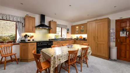 SITUATION Tigh an Bruaich sits in a superb position just outside the pretty hamlet of Keltneyburn to the west of Aberfeldy in highland Perthshire. In an area renowned for its natural beauty, with lochs, forests and hills, Tigh an Bruaich enjoys an ideal position to make the most of these stunning natural features. Aberfeldy, Scotland’s first Fairtrade town, lies only 10 minutes drive away and provides a range of excellent amenities with a selection of local and national retailers as well as a bank, supermarket, doctors, dentists, veterinary practice and the well regarded Breadalbane Academy.The local area is a super location for outdoor pursuits with Loch Tay close by for water sports, a myriad of local walking and cycling trails and a diverse range of local golf courses including courses at Aberfeldy, Taymouth Castle, Pitlochry, Blair Atholl and Strathtay. There are three Munros in close proximity, Meall na Aighean, Carn Mairg and Schiehallion. Perthshire is also well known for fishing with many prestigious fish beats in the local area including Pitcastle, Grandtully and Findynate. Tay Forest Park and The Birks of Aberfeldy are also close by with their beautiful ancient trees and stunning walks.The local transport links are excellent, the train stations at Pitlochry and Birnam provide regular services to Perth, Edinburgh, Glasgow and Inverness and a nightly sleeper train to London.DESCRIPTION Tigh na Bruaich is a lovely traditional house with offers superb lateral living with great flexibility throughout. The entrance hall leads to a spacious sitting room which extends to a sunroom with views over the garden and surrounding countryside. Leading from the sitting room is a generous dining kitchen with dual aspect windows, integrated appliances and a rangemaster cooker. The kitchen has a very useful utility room which has a convenient built in shower room.Accommodation is provided within the more modern extension to the property which has three generously propositioned double bedrooms and a single bedroom. The bedrooms all have integrated wardrobes and benefit from ample natural light. There are two bathrooms which gives plenty provision for the whole family. The accommodation comprises:Sitting Room with Sun Room, Kitchen, Utility Room, Shower Room/WC, 3 Double Bedrooms, Single Bedroom, 2 Bathrooms.Adjacent to the main house is a traditional stone byre which provides a great additional space which is currently use as a games room but could also be used for storage or potentially as a study space. Tigh na Bruaich has previously been used as a successful holiday let and provides a great opportunity to continue as such subject to appropriate permissions. GARDEN Tigh na Bruaich sits within a well maintained garden which provides lovely structure and maturity surrounding the house. To the side of the house is a delightful formal lawn area leading directly from the sunroom with a patio which provides a lovely space to sit and enjoy the peaceful surroundings. There is a further lawn area on the other side of the house which is bordered by mature trees and shrubs. To the front of the house, in front of the Byre, is a lovely extended garden with a pretty pond and superb views of the surrounding countryside. As well as the larger gardens Tigh na Bruaich has a delightful private courtyard which provides a sheltered space for outdoor dining throughout the year.The driveway leads to a generous gravel parking and turning area with ample room for multiple large vehicles and access to the timber garage.