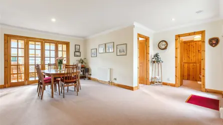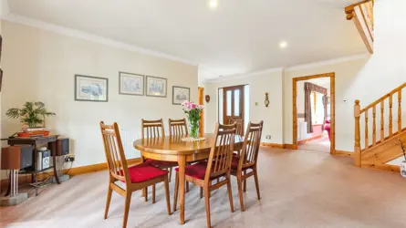 SITUATIONMarloch is situated in Kinloch, a pretty hamlet only 2 miles west of Blairgowrie. The popular and highly sought after town of Blairgowrie provides an excellent array of services including primary and secondary schooling, shops and supermarkets, cafes and restaurants, and a health centre. The fair city of Perth lies 17.5 miles to the south and the city of Dundee 21 miles to the south east, both cities have a wide range of facilities, including theatres, cinemas, restaurants and supermarkets. Perth is home to the University of the Highlands and Islands while Dundee boasts two universities and an airport with regular flights to London. Both Perth and Dundee have railway and bus stations with regular services to Edinburgh and Glasgow.The surrounding area of Perthshire offers a wealth of recreational opportunities and is well suited to the outdoor enthusiast for walking, cycling and horse riding. The area around Marloch is home to a wide array of wildlife and there is easy access to particularly outstanding and varied countryside with hills, woodland, river and rolling farmland. There are a number of golf course locally including three golf courses available in Perth, two in Alyth, Rosemount in Blairgowrie, as well as numerous championship courses at St Andrews. Shooting and fishing can be taken in the nearby area.DESCRIPTIONMarloch is an attractive 3/4 bedroom detached property offset from the main road running through Kinloch. The property is of timber frame construction with a stone front, block and harling to the rear, and under a slate roof. Upon entering, the impressive dining hall leads to ample reception spaces comprising a generous triple aspect living room with open fire, sunroom with garden access, and a dining kitchen with adjoining utility room and shower room. The ground floor also hosts a double bedroom and additional WC. A fixed staircase leads to the first floor comprising a large mezzanine, master bedroom with ensuite, double bedroom with integrated wardrobes, family bathroom, study and storage room which has scope to be an additional double bedroom.ACCOMMODATIONGround Floor: Entrance Dining Hall, Living Room, Sunroom, Kitchen, Utility Room, Shower Room, Double Bedroom, WC.First Floor: Master Bedroom with En-Suite, Double Bedroom, Storage Room, Family Bathroom, Office and Storage / Double Bedroom.GARDENMarloch is accessed via a private tarmac drive leading to a triple garage with power, extensive workshop and ample space for parking. Marloch is centrally positioned within its garden grounds which are bounded by stone walls. To the rear of the property is a wonderful outdoor patio area with space for outdoor dining and hosting friends and family. The grounds feature areas of lawn, decking, a summer house and a variety of shrubs and bushes providing ample privacy and a myriad of colour. There is also a large storage shed to the rear of the property which can be removed.