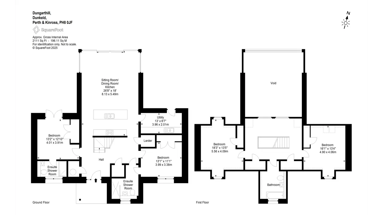 SITUATION Hill View sits in a lovely rural setting, within a small cluster of principally new build houses at Dungarthill, some 3.5 miles west of Dunkeld, a popular and highly sought after village in the County of Perthshire. Dunkeld, lying on the banks of the River Tay, with its historic Cathedral, is a vibrant village with a thriving community and superb day to day facilities including a delicatessen, bakery, butcher, small supermarket, independent retailers, restaurants, coffee shops, golf course, medical centre and primary school. Dunkeld also has a train station providing regular services north and south together with the sleeper service to London.Perth, known as the Fair City, is approximately 17.5 miles south and provides excellent facilities and services including national retailers, concert hall, theatre, swimming pool, banks, as well as a bus and train station with services to Edinburgh, Glasgow, Inverness and Aberdeen. Edinburgh can be reached in just over an hour’s car journey with its international airport and broad and vibrant city amenities.Perthshire is a county renowned for its wealth of recreational activities on its doorstop. The surrounding hills and glens offer many walking and mountain biking routes while winter sports can be enjoyed at Glenshee Ski Centre which lies about an hours car journey to the north. For the golfer there are numerous courses within a comfortable distance including Dunkeld, Perth and Blairgowrie. Dunkeld is also home to a clay pigeon shooting range, Land Rover Experience Scotland and The Dunkeld House Hotel which offers an extensive range of outdoor recreational activities such as fishing or quad biking. Here there are also a variety of walking and cycling routes along the River Tay.DESCRIPTION Hill View is a lovely contemporary house which has been recently completed to the highest standard. The entrance hall leads to a stunning open plan kitchen and living room with double height ceilings and beautiful views of the surrounding countryside. The kitchen has integrated appliances and an island with a breakfast bar creating a social space ideal for hosting guests. The living room/dining room extends beyond the kitchen and is flexible and adaptable making it ideal for family life. Off the kitchen is a utility room with a back door to the patio and a larder cupboard. He ground floor has two spacious double bedrooms, both with integrated wardrobes and ample room for furniture. One is en suite while the other is jack and jill.A lovely oak staircase leads to the first floor where there is a mezzanine with windows overlooking the living room and the views beyond. This is an ideal space for a study, children’s play area or a studio. There are two bedrooms on the first floor, with integrated wardrobes and lovely views, as well as a family bathroom. ACCOMMODATION Ground Floor: Entrance Hall, Living/Kitchen, Utility, Double Bedroom with Jack and Jill Bathroom, Double Bedroom with En Suite.First Floor: Mezzanine, 2 Double Bedrooms, Bathroom.GARDEN Hill View has lovely garden grounds which provide exceptional views of the surrounding countryside. To the front of the house is a generous driveway with ample parking for multiple cars. To the rear of the property is a lovely patio, ideal for outdoor dining and enjoying the peaceful surroundings. Beyond the patio is the lawn which wraps around the rear and side of the house and provides a super space for children to play or for the creation of a beautiful productive garden.