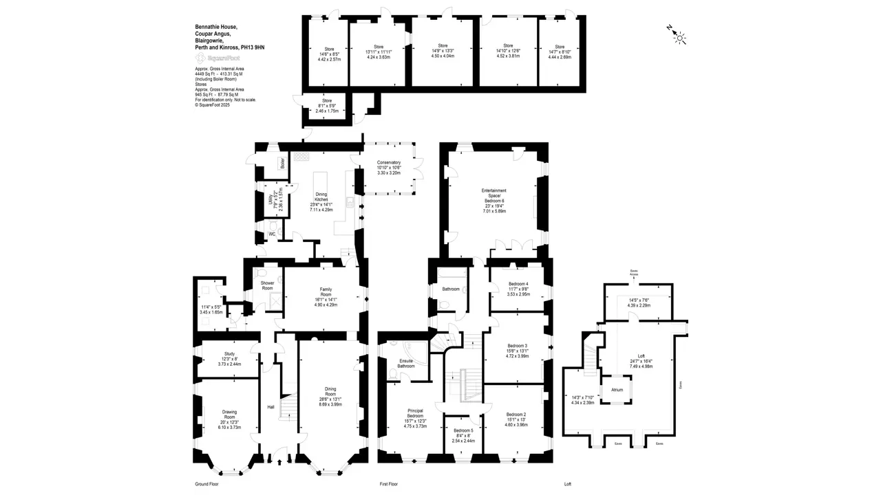 SITUATION Bennathie House sits in a super location between Coupar Angus and Blairgowrie in rural Perthshire. Coupar Angus is only 1.8 miles to the south and provides super facilities including a primary school, village shop, cafes and restaurants. The popular town of Blairgowrie is 2.5 miles to the north and provides more extensive facilities including primary and secondary schooling, a range of local and national retailers, supermarkets, a medical centre, and a recreation centre. Bennathie House is ideally located for easy access to many of Scotland’s cities. Perth is only 30 minutes drive to the south west and Dundee only 30 minutes to the south east, both provide excellent amenities with supermarkets, hospitals, entertainment facilities and transport connections with bus and rail stations and Dundee’s airport. The centre of Edinburgh can be reached in approximately 90 minutes and the centre of Aberdeen in the same time.DESCRIPTION Bennathie House is a beautiful traditional house that has been carefully restored by the current owners. The traditional front door enters into an impressive hall with a superb staircase and reception rooms on either side. The formal sitting room is a delightful space with an open fire, a bay window and ornate cornicing creating a warm, relaxing space. The dining room on the opposite side is an impressive room which is ideal for hosting guests. Moving into the house there is a useful study which could also be a 6th bedroom, as well as a snug which has the traditional cook’s fireplace on full display. The generous kitchen is a super space and provides scope for modernisation to any buyer’s taste. The kitchen benefits from a larder as well as a sunroom. The ground floor is completed by a boot room, a shower room and a back hall with a WC. A lovely traditional staircase leads to the first floor which is split into two sections, at the front of the house is the master bedroom which has an ensuite bathroom, there is a further double bedroom and a single bedroom here. At the rear is two further double bedrooms and a family bathroom as well as the fantastic entertainment room, this generous space could be used for many different purposes including another bedroom, an event space, or a business space. All the bedrooms have beautiful cornicing and charming traditional features, with the cornicing and sprung floor in the events room being a particular highlight. A further staircase takes you up to the attic space which provides the opportunity for further bedrooms, or a studio space and creates great flexibility.ACCOMMODATION Ground Floor: Entrance Hall, Sitting Room, Dining Room, Study, Snug, Boot Room, Bathroom, Kitchen with Larder, Sunroom, Back Hall, WC. First Floor: Master bedroom with En-suite, 3 Double Bedrooms, Single Bedroom, Bathroom, Entertainment Room. Second Floor: Attic Room.GARDEN AND GROUNDSBennathie House sits in the centre of its grounds and enjoys a private location with a pleasant outlook. A gravel drive leads to a generous parking area with ample room for multiple cars. There is a superb garden which is mostly laid to lawn and has mature trees and hedging providing privacy and structure. There is a patio to the side of the house and a lovely barbeque area which provides a great space for relaxing and hosting company. To the rear of the house are the traditional outbuildings including storage sheds and the old stables which have previously been positively looked upon for conversion to short term let accommodation, subject to the necessary permissions. Adjacent to the house and gardens is a paddock which provides an ideal space for extended gardens or for ponies or other pets.