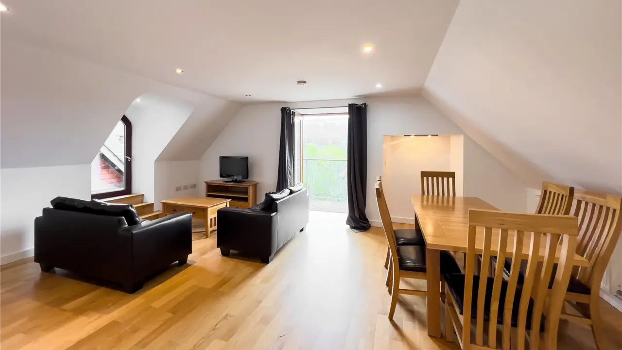 SITUATION Apartment 6 is a lovely top storey flat located within the historic Crown Buildings in Aberfeldy. Aberfeldy, a highly sought after town, has an extensive range of amenities such as supermarkets, cinema, doctors surgeries, dental and veterinary practices, bank, independent retailers, various restaurants and cafes, as well as primary and secondary schooling at Breadalbane Academy Community Campus. Breadalbane Academy is also equipped with a wide range of facilities such as a swimming pool, fitness classes, sports hall and gym. Some 14 miles away is Pitlochry, another popular town with more day-to-day facilities including a bus and train station with regular services to Inverness, Glasgow, Edinburgh, and London. The ‘Fair City’ of Perth is the closest city and can be reached in under an hours car journey. Perth offers a wider range of national retailers, has various primary and secondary schools and has both a theatre and concert hall. Edinburgh and Glasgow can both be reached in approximately 90 minutes drive. DESCRIPTION Apartment 6 is a spacious 3 bedroom apartment with ample natural light. The kitchen, dining room and sitting room are generously proportioned with lovely views overlooking highland Perthshire. There are three well proportioned double bedrooms, one with an en-suite, and there is also a family bathroom.ACCOMMODATION Sitting/Dining Room, Kitchen, Master bedroom with Ensuite, 2 Double Bedrooms, Hall.The property benefits from an allocated parking space to the rear of Crown Buildings.