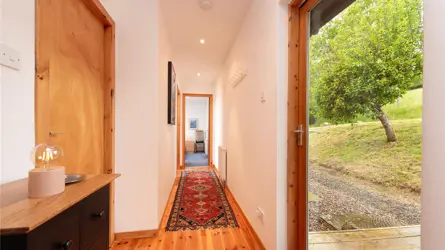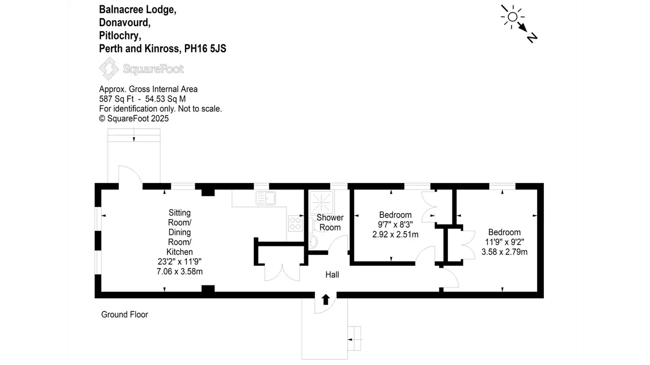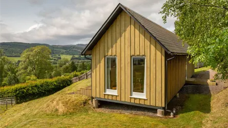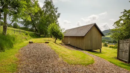 SITUATION Balnacree Lodge is situated in an elevated position with the most wonderful southerly outlook over the surrounding countryside and hills beyond. The property is located on the edge of Donavourd, a pretty hamlet approximately 2 miles south of Pitlochry, a popular and highly sought after town which benefits from great day-to-day facilities such as a supermarket, chemist, medical centre, dentist, a range of cafes and restaurants, a train station with sleeper services to London, as well and nursery, primary and secondary schooling. Pitlochry itself offers a wealth of cultural activities including the famous Festival Theatre with regular shows and performances and the iconic fish ladder.The city of Perth is under an hour’s drive south and offers a good range of local and national retailers, leisure facilities, banks, an art gallery, cinema, swimming pool and theatre. There is also a bus and train station with excellent transport links to Aberdeen, Inverness, Glasgow and Edinburgh.Perthshire is renowned for its wealth of recreational opportunities on its doorstep. The surrounding hills and glens offer many walking and mountain biking routes whilst winter sports can be enjoyed at Glenshee Ski Centre which lies under an hours journey north. For the golfer, there are numerous courses within a comfortable distance including a course in Pitlochry itself with both Dunkeld and Perth offering additional courses. DESCRIPTION Balnacree Lodge is of a steel portal frame construction clad with timber under composite tile roofing with accommodation across one floor. The entrance hall leads into the bright and airy reception space which benefits from floor to ceiling windows providing wonderful south west views overlooking the River Tummel, surrounding countryside and hills beyond. The reception space provides open plan living with kitchen, dining and sitting room facilities located together, perfect for socialising, as well as garden access to the south. The remainder of the ground floor comprises 2 double bedrooms, a shower room and a utility cupboard. Balnacree Lodge benefits from planning permission for n extension to create a further living room which could also be used as a third bedroom. More details are available on the Perth and Kinross planning Portal under the reference 24/01717/FLL.ACCOMMODATION Ground Floor: Hall, Kitchen/Dining/Sitting Room, Utility Cupboards, Shower Room, 2 Double Bedrooms. GARDEN (AND GROUNDS) Balnacree Lodge has a right of access over and is accessed via a shared access track which leads to a gravel and grass parking area. The property benefits from a wrap around south facing garden, which makes the most of the views and is primarily laid to lawn with post and wire fencing. A further area of the paddock to the front of the cottage is being included to provide extended garden grounds. Buyers will be obligated to erect a stock proof fence around the paddock area within 3 months following the date of entry.