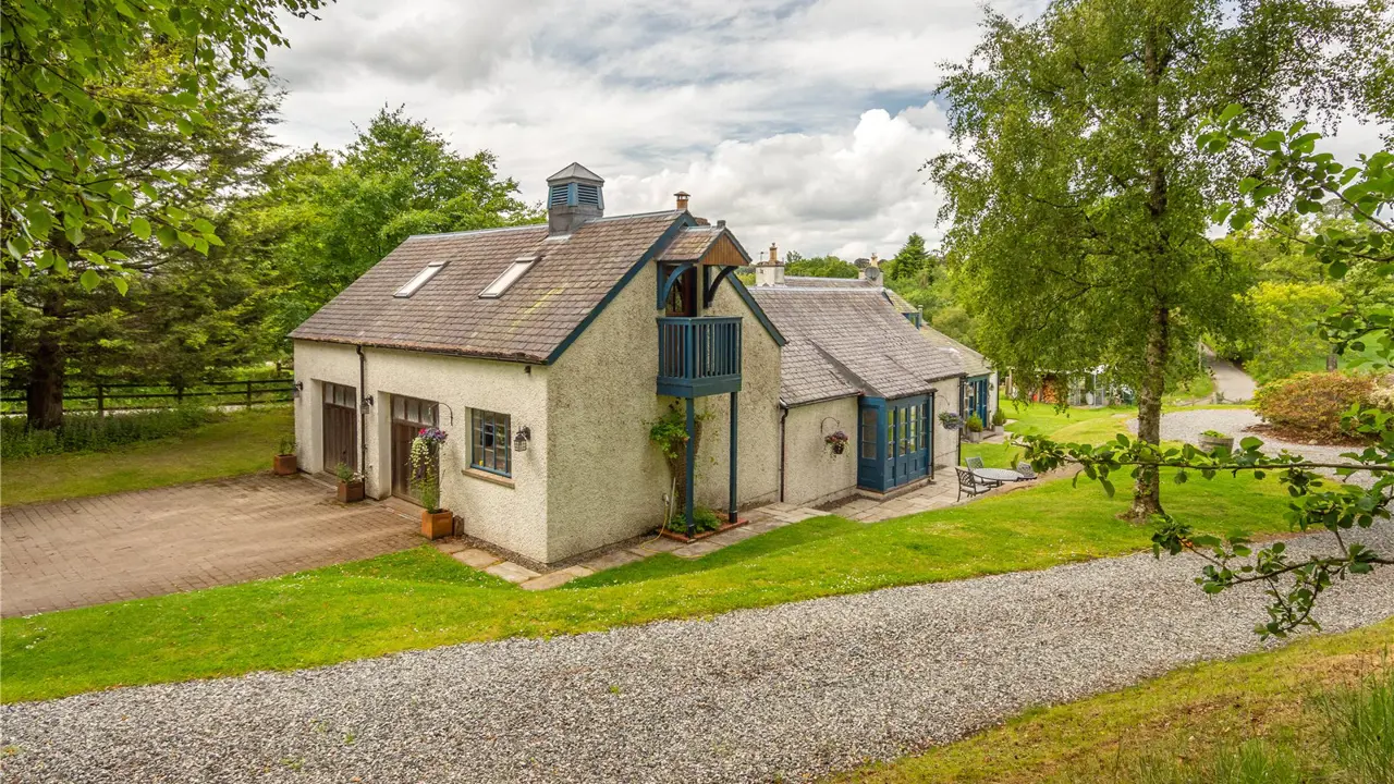 SITUATION Smithy Croft lies approximately 3 miles to the north of the town of Blairgowrie in the county of Perthshire and enjoys a superb rural position commanding outstanding views over the surrounding countryside. Blairgowrie provides comprehensive day to day facilities including a secondary school, supermarkets, independent retailers, a medical centre and restaurants. The city of Perth lies approximately 20 miles to the south and provides an excellent range of services and facilities including national retailers, theatre, concert hall, banks and railway station. Dundee is 23 miles to the south east and provides equally good facilities as well as two universities and an airport with regular flights to London.Perthshire is renowned for its wealth of recreational opportunities on the doorstep. The many hills and glens offer a wealth of walking and mountain biking routes whilst winter sports can be enjoyed at Glenshee Ski Centre which lies about 90 minutes journey north. For the golfer, there are numerous courses within a comfortable distance including the world renowned Rosemount golf course at Blairgowrie.DESCRIPTION Smithy Croft is a delightful traditional house sitting within a lovely garden and enjoying a beautiful setting with super views of the surrounding countryside and hills beyond. It has a part harled, part cedar clad and part original stonework exterior lying under a slate roof with double glazing throughout and is comprised of a traditional house with an impressive carpenter oak extension. Upon entering the charm and character of the house are evident with well proportioned rooms offering light and bright accommodation and superb reception spaces. The welcoming entrance hall leads to the suburb sitting room which has feature oak beams, an impressive fireplace and dual aspect views with ample natural light, this is a great space for entertaining guests and accommodating family life. The cosy kitchen has traditional charm with an Aga and an excellent range of wall and base units. Off the kitchen is the dining room which continues through to a snug which is a lovely peaceful space that could be a fourth bedroom if desired. The ground floor accommodation is completed by a utility room and a WC.From the hall, a staircase leads up to the principle suite which has a generous master bedroom, a mezzanine and a bathroom with a bath and a shower. The other bedrooms are reached by a staircase in the original part of the house and are generously proportioned with great storage and benefit from a bathroom and a pretty mezzanine which has lovely views of the gardens. ACCOMMODATION Ground Floor: Entrance Hall, Kitchen, Sitting Room, Dining Room, Snug, Utility, WC, Porch. First Floor: Principle Bedroom Suite with Double Bedroom and Bathroom, 2 Double Bedrooms, Bathroom, Mezzanine Seating Area.GARDEN AND GROUNDSSmithy Croft sits within extensive grounds of some 22 acres. To the rear of the house is a gravel drive with a turning circle beyond which is well maintained lawns with mature shrubs providing structure and colour. Immediately off the entrance hall is the sheltered courtyard garden which provides a delightful space to sit and enjoy the afternoon sun and the peace of the surroundings. Off the sitting room is a further seating area within a lovely, curved wall which is ideal for lunchtime dining. Beyond the lawns is a delightful wooded area with a mix of native species that provides wonderful amenity ground and habitat for the local wildlife. Within the woodland is open areas of grazing ground which have great potential to be used for ponies or other smallholding activities. At the rear of the property is about 20 acres of woodland which was planted approximately 30 years ago, this is mostly coniferous with some deciduous species. Smithy Croft has a generous double garage with ample room for two cars as well has plenty storage space. The garage also has a superb workshop space above the parking area which has a charming door onto a small veranda and provides the potential for use as a home office or playroom. The garage is accessed directly from the driveway with a door leading to the courtyard. Within the garden there is a timber garden shed which is sued for storing garden equipment and a further wooden shed with a hardcore base which is ideal for storing machinery.