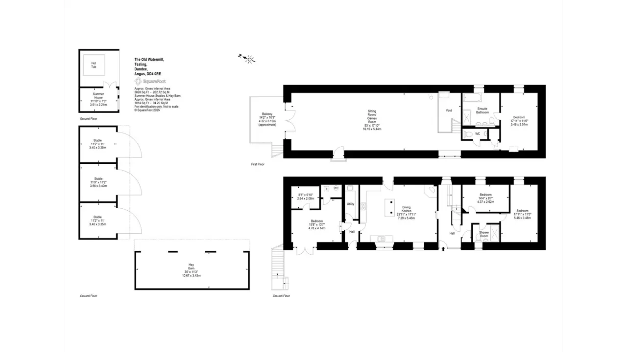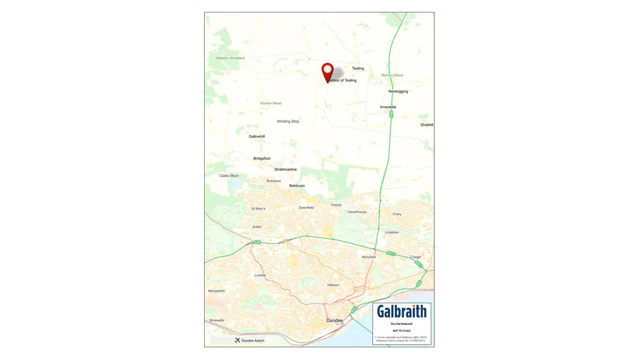 SITUATION The Old Watermill is situated in a rural location about a mile west of the hamlet of Tealing, surrounded by the beautiful Angus countryside. There is excellent access on to the A90 with Dundee city centre being a mere 15-minute drive away. The City of Dundee offers a wide array of services and amenities including local and national retailers, banking and leisure facilities, 2 Universities, cinemas, bus and train stations as well as an airport with regular flights to London. Both Edinburgh and Aberdeen can be reached in over an hour by car and host a further range of amenities including International Airports. Angus offers a breadth of recreational opportunities and The Old Waterhouse is ideally placed to make the most this vibrant county has to offer. The nearby Angus Glens provide a myriad of walking and cycling trails and a number of Munros all within easy reach. There are many golf courses within easy reach including courses in Dundee, Kirriemuir and Forfar. DESCRIPTION The old Watermill is a most attractive contemporary barn conversion sitting within a well tended garden with great views over the surrounding countryside. The house has a stone exterior lying under a slate roof with double glazing throughout.The house provides a wealth of bright and spacious accommodation over two floors. The kitchen/dining/living room benefits from an excellent range of wall and base units, integrated appliances and a woodburning stove, it enjoys dual aspect views over the garden and paddocks and is a superb family space. The ground floor has two double bedrooms and a shower room and there is a further double bedroom with an ensuite bathroom that is currently used for dog grooming. The first floor opens up into a most wonderful sitting room/games room which is ideal for entertaining guests as well as providing a fantastic family space. It benefits from a balcony via French doors as well as a Juliette balcony providing ample light and enjoys spectacular views over the paddocks and surrounding countryside. The first floor is completed by the principal bedroom with an ensuite as well as a WC.ACCOMMODATION Ground Floor: Front Hall, Kitchen/Dining/Living Room, Utility Room/Larder, Double Bedroom with Ensuite, 2 Further Double Bedrooms, Shower Room, Storage Cupboards.First Floor: Sitting Room / Games Room, Principal Bedroom with Ensuite, WC.GARDEN AND GROUNDSThe Old Watermill sits within delightful and well-maintained grounds that provide an attractive backdrop with great views over the surrounding countryside. A good-sized paved parking area provides ample parking as well as space for a newly built summer house with a hot tub. Wrapping around the rear of the house is a lovely garden, mostly laid to lawn with mature trees and hedging providing structure and privacy. there is a useful garage at the top of the garden as well as a summerhouse. Adjacent to the house is a spacious yard with two newly built timber stable blocks, the stables have concrete floors and can be split into stables or kept open for storage. The yard and stables benefit from their own access off the hared access track. The yard and stables are complimented by approximately 4.58 acres which is split into a number of good-sized paddocks and is ideal for horses as well as potentially for smallholding use or extended gardens.