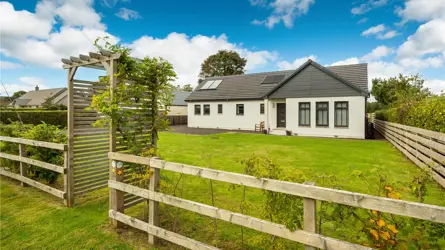 SITUATION Pine View lies in the heart of Ardler, a pretty village in the county of Perthshire and enjoys a superb position with lovely views of the surrounding countryside. Ardler is a superb village with a well-regarded dining pub and views of the Sidlaw Hills to the south and the Grampian Hills to the north. Day to day facilities can be found at the nearby village of Meigle, located approximately 2 miles east, and in the town of Coupar Angus to the west, which both benefit from a primary school, church, village shop and selection of cafes. The city of Dundee is the closest city and is situated about 13 miles to the south and provides an excellent range of facilities and services including two universities, shopping centres, a railway station and an airport. The city of Perth is equally convenient and is situated about 16 miles to the south west and provides an excellent range of services and facilities including national retailers, theatre, concert hall, banks and a Railway station. Edinburgh and Glasgow can both be reached in over one hour by car, with their international airports and vibrant city amenities.Perthshire is renowned for its wealth of recreational opportunities on the doorstep. The many hills and glens offer a wealth of walking and mountain biking routes, while winter sports can be enjoyed at Glenshee Ski Centre, located approximately 50 minutes north by car. For the golfer, there are numerous courses within a comfortable distance, including Blairgowrie, Alyth and multiple in an around Perth.DESCRIPTION Pine View is an attractive contemporary home set over one floor providing lateral living throughout and has been finished to a high standard with quality fixtures and fittings throughout. The entrance vestibule and hall leads directly to the reception spaces and accommodation. The reception space is a key feature of the house which is ideally suited for flexibility, entertaining and family living. The dual aspect kitchen / dining / sitting room has doors leading into the garden with a double height ceiling benefiting from a lot of natural light and wonderful garden views. A formal sitting room lies adjacent and has been tastefully decorated to provide a cosy reception space. The ground floor is complete with the principal bedroom with an ensuite, a double guest bedroom with an ensuite, an additional 2 double bedrooms and a family bathroom. There is also a useful utility room. ACCOMMODATION Ground Floor: Entrance Vestibule, Hall, Sitting Room, Kitchen/Dining Room/Sitting Room, Utility Room, Principal Bedroom with En Suite, Double Bedroom with En Suite, 2 Double bedrooms, Family Bathroom. GARDEN Pine View sits in the centre of a lovely plot and is pleasantly set back from the main road. To the front is a generous gravel parking area with ample room for multiple cars. The lawn is well maintained and a hedge has been planted providing privacy. To the rear is a delightful garden which has been designed for the property, there is a lovely lawn with raised borders around the edge and a pretty sun deck with superb views over the surrounding countryside. Sitting within the garden is also the garden room, a great space which has a myriad of possible uses and has been built to a very high standard. Fully insulated with big windows overlooking the garden it is a super addition to the property.