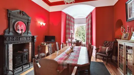 GENERALCove Castle is situated in the attractive coastal village of Cove which lies on the Rosneath Peninsula which is bound by Loch Long to the west and Gare Loch to the east. The settlement of Cove contains a small village shop/Cafe, and is also home to the renowned Cove Sailing Club. The village of Kilcreggan which adjoins Cove to the south offers a local pub, health centre, garage and coffee shop. Local primary schooling is found in Kilcreggan Primary School with a new senior school, Hermitage Academy in Helensburgh situated 16 miles to the east. The leading co-educational boarding school Lomond School is also found in Helensburgh.The naval ports of Faslane and Coulport are located within 10 miles of the property and are accessed by a frequent bus service. There is a regular ferry service to Gourock from Kilcreggan which interlinks with train and bus services to and from Glasgow with services to Edinburgh. There are rail links to Glasgow and further afield from Helensburgh, Gourock and Garelochhead, which is on the scenic West Coast Mainline with services to Oban, Fort William and London Euston (Caledonian Sleeper).The Rosneath Peninsula offers a wide range of outdoor activities to accompany the stunning views, mountains and sea lochs. Cove Sailing Club runs weekly races and competitions throughout the summer season. Loch Lomond Golf Club, which is one of the finest private Members clubs in the world is only a short 30 minute drive from the Castle. There is also an 18 hole golf course found in Helensburgh and three further courses in Gourock and Greenock. The Peaton Hill Community Nature Reserve is popular for its boardwalk paths and wildlife and is situated only 4 miles to the north of Cove.The scenic Loch Lomond and The Trossachs National Park contains the Arrochar ‘Alps’ situated at the top of Loch Long which provides a range of munros and hills for all walking abilities. There is also a plethora of recreation and leisure opportunities, including a wide range of water sports found at Loch Lomond only 30 miles to the east.DESCRIPTIONCove Castle is a unique and truly spectacular, B listed Scots Baronial style home situated in the small coastal settlement of Cove overlooking Loch Long to the west.The Castle has been extensively upgraded to meet the requirements of modern living with a new heating system, double glazing in most areas and a roof that can confidently cope with the famous Scottish weather.The property is approached through private gates and via a private drive which leads from the public road, terminating in a sweep to the front of the house. It is believed that the Castle was bought by James Hannay in 1883 who claimed to be the first person to artificially create the industrial diamond, unfortunately this is still a debate had by current scientists.The property contains many traditional features attributed to this period style property including large spacious rooms with high ceilings, stained glass windows, grand main staircase with two secondary spiral staircases leading to the turret and level that would have been used by servants.There is a spacious drawing room with a solid wood burning stove. There is a large dining room on the first floor, which overlooks the front lawn and Loch Long. The kitchen has been modernised but in a traditional style with fitted cupboards, appliances, cooker and impressive wood burning stove..Across the first, second and third floors are the reception rooms, bathrooms, and bedrooms all featuring period details and can be access by the main stair case or the tower stairs.The accommodation extends to around 4700 square feet overall.METHOD OF SALECove Castle is offered for sale as a whole.Contents, including many Arts and Crafts antiques, may be available by separate negotiation.COVE CASTLECove Castle is a traditional stone built castle under a slated roof enjoying a south/west aspect. The accommodation over four floors comprises:Ground Floor:Entrance hall, breakfasting kitchen, bar, lounge, cloakroom, WCFirst Floor:Drawing room, dining room, bedroom 4/snooker room, WCSecond Floor:Main bedroom, dressing room/bedroom 2, bedroom 3, shower roomThird Floor:Bedroom 5, bedroom 6, bedroom 7, bathroom, studyThe garden surrounds the property on all sides and stretches to approx. 7 acres, including the foreshore across the width of the gardens. The extensive garden is bound by a stone boundary wall, and access is via private gates. A mix of mature woodland, laid to lawn, hidden passages and a cave surround Cove Castle offering an enchanted garden to explore.