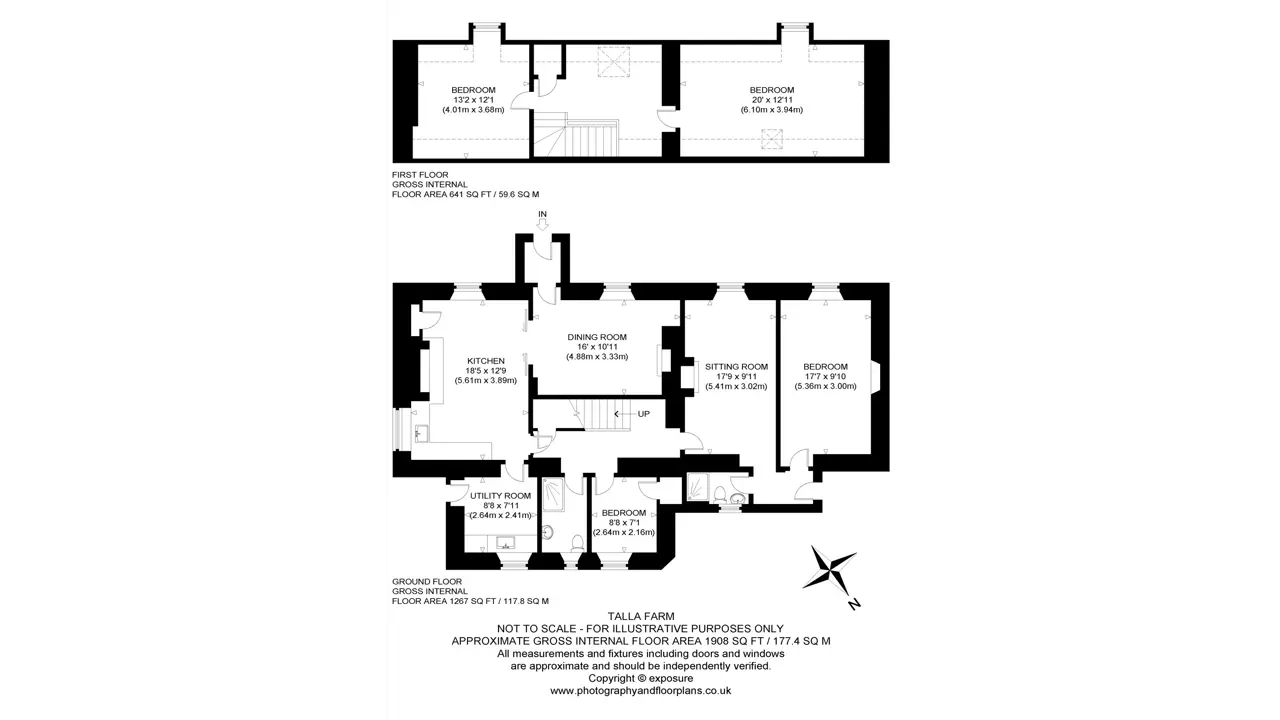 SITUATIONTalla Farm is wonderfully positioned in one of the most scenic areas of the Scottish Borders, on the south eastern shores of the Talla Reservoir, approximately 4 miles southeast of the village of Tweedsmuir and some 40 miles south of Edinburgh. The farm enjoys a secluded position benefiting from uninterrupted views over the surrounding countryside along the Talla Reservoir to the north and of the surrounding valleys and hills.The village of Broughton about 12 miles to the north offers day to day amenities including a local primary school, community shop and tea room and an independent garage, and since 1979, the village has been home to Broughton Ales, Scotland’s original independent microbrewery. There is an active rural community, which recently opened the Wee Crook Café as a vibrant village hub in 2023, on the site of the famous Crook Inn where Rabbie Burns used to write.The surrounding area has become famous for its all year round sporting and recreational amenities, including salmon fishing on the River Tweed, grouse and pheasant shooting on local estates, golf courses at Peebles, Biggar and Moffat, and there are several highly regarded and challenging walking and cycling routes including the “Wall of Talla” which forms part of southern boundary of the farm.The former market town of Biggar is 14 miles north west and provides all necessary services and amenities alongside many independent retailers. Further afield, Peebles, 22 miles to the north east, offers a wider range of retail and cultural opportunities as well as the world famous Glentress mountain bike venue. Secondary school children would travel by bus to Peebles High School following their primary education at Broughton.The M74 motorway is situated approximately 20 miles to the south west providing access to the South and North West England, with the Edinburgh City By-pass and M8 located 36 miles to the north east and 39 miles to the north respectively, providing further access to the majority of central Scotland and the North.Edinburgh with all the facilities of a capital city is about 40 miles to the north and offers a wide range of amenities including retail centres, leisure and business facilities, and provides regular mainline railway connections and international airports.HISTORYTalla farm originally formed part of the larger The Talla and Gameshope property which was a substantial sheep farm extending to some 5,300 acres, until the wider property was divided up back in 2017 and Talla was then sold to the current owners. The wider area is famed for its historical links during the 13th century as a stronghold for campaigns for independence led by William Wallace as well as being a battleground for the endless disputes across the Scottish Border.In more recent times, Talla has been used in conjunction with the seller’s wider farming operations since 2017, and due to it being located within one of the most spectacular locations in Southern Scotland, the farmhouse and surrounding land have also been used as the location for several films and TV adverts such as TK Maxx and H&M.DESCRIPTIONTalla Farm is centred on a charming traditional 4-bed farmhouse benefiting from a private area of garden grounds, with a useful and adaptable traditional outbuilding, currently used as a stable and store, a modern-built sheep shed and a former Bothy. The residential property is surrounded by a contiguous block of productive pasture land and grazing ground, which extends to approximately 6.84 Ha (16.90 Acres) including roads, yards and buildings.The farmhouse and buildings are situated in a private and secluded location and benefit from views over the surrounding countryside and the Talla reservoir which was opened in 1905 to supply the increasing water demands of the expanding city of Edinburgh. LOT 1: TALLA FARMHOUSE, OUTBUILDINGS AND LAND EXTENDING TO 6.84 HA (16.90 ACRES)FarmhouseTalla farmhouse is situated on the south eastern shores of the Talla Reservoir and presents an attractive traditional stone-built farmhouse under a slated roof enjoying a southernly aspect, and outstanding and ever changing views across the surrounding countryside. The farmhouse provides spacious accommodation set out over two levels including a large kitchen diner, living room, sitting room, utility room, two shower rooms and 2 double bedrooms on the ground floor, with a further 2 double bedrooms and a large landing area on the first floor. The accommodation and room dimensions are set out in more detail within the floor plan contained in these particulars.Garden GroundsThe farmhouse benefits from a large area of garden ground which surrounds the property and is mostly laid to lawn. There are a number of mature trees located to the rear of the property which provide privacy and shelter. The property is accessed via a private gated driveway which leads from the public road to a large area of hard standing adjacent to the farmhouse and buildings, providing ample space for parking or additional storage needs.Farm BuildingsTalla Farm is well equipped with both traditional and modern outbuildings which lie adjacent to the farmhouse and include a sizeable yard area. The traditional buildings on Talla may present future opportunities for conversion and development to alternative use, subject to obtaining necessary planning consents. The buildings comprise:Log Store/Stable/Garage (5.81m x 5.98m + 5.78m x 5.92m)Of traditional stone construction under a slate roof with a concrete floor and small loft space above.Modern Sheep Shed (31.40m x 12.90m)Of timber frame construction under a box profile roof with a concrete floor, timber and Yorkshire board side cladding. The building is also equipped with recently installed LED lights and roller wind breakers.KennelsThere are 6 timber-built dog kennels under a felt roof with a concrete floor.Bothy (8.27m x 4.28m)Of traditional stone construction under a slate roof and earth floor. There are also range of exter