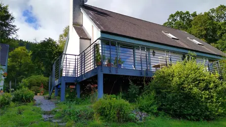 SITUATIONGrianan sits within a unique and highly scenic position in the Balquhidder Glen, known by many as the ‘Hidden Glen’. It enjoys a superb position looking over Loch Voil and is surrounded by outstanding countryside and views. The property is located within a small village and the popular town of Callander is within easy reach.Balquhidder has a strong and active community with associations and activities for all ages with the village hall providing the venue for a variety of social activities. In addition there is the Mhor 84 hotel at the beginning of the Balquhidder Road and 4 miles further up the glen road is the award winning Monachyle Mhor hotel. Strathyre lies approximately 4 miles to the south and provides a village shop, Post Office, primary school and hotels. Callander is the closest town situated on the River Teith and often described as the gateway to the Highlands. Many shops and services are available including banks, petrol station, cafes, restaurants, doctor surgery and dentist together with the McLaren High School which also has a Leisure Centre. Callander is also home to its own 18 hole golf course.Stirling, the closest city, is well placed for road, rail and bus connections to all the major cities in Scotland. The pivot of the motorway network is only 3 miles to the west of Stirling, giving quick access to Perth, Edinburgh and Glasgow. Both Edinburgh and Glasgow Airports are within a comfortable distance. Stirling has a wide range of amenities including major supermarkets, a good selection of independent and high street shops, sporting, recreational and cultural facilities.Balquhidder is located in the Loch Lomond & the Trossachs National Park. The Trossachs are renowned as one of Scotland’s most rugged and inspiring areas and provides something for everyone, whether that is adventure, exploring, relaxing, nature or history. It offers some of the most stunning scenery with breathtaking mountains and glens and the vast tranquil beauty of Loch Lomond.DESCRIPTIONGrianan is a detached villa offered with over 1.6 acres of land, bordering the loch over its entirety. The land comprises a nature conservation area, consisting of rare tussocky fen areas and carr landscape. The main house is complemented with a substantial garage/boathouse, including a first floor storage room.The house itself is accessed through a convenient porch and hallway, leading to an open plan living room and kitchen. The sliding doors in the living room give access to a large balcony overlooking the South facing garden, tussocky fen area and Loch Voil. On the ground floor, there are a further two double bedrooms, one of which has an en-suite shower room, a large family bathroom and a utility & boiler room. Upstairs are a large double bedroom and study. The property benefits from a home security system.The gated grounds are entered through a driveway in front of the house, leading to the garage. The gardens to the west of the house reflect a sloping Himalayan garden.ACCOMMODATIONGround Floor: Porch, Hall, Kitchen, Livingroom, Bedroom One, Ensuite, Bedroom Three, Bathroom, Utility.First Floor: Bedroom 2, Study.
