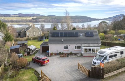 An attractive 4 bedroom family house with beautiful, framed views to the Kyle of Sutherland and easily maintained gardens with sheltered sitting areas.