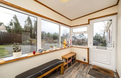 An attractive 4 bedroom family house with beautiful, framed views to the Kyle of Sutherland and easily maintained gardens with sheltered sitting areas.