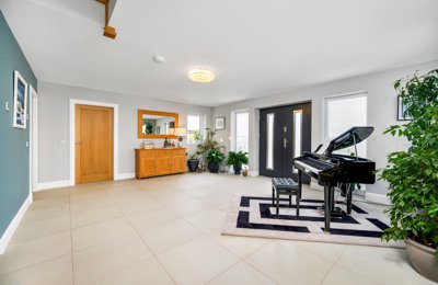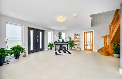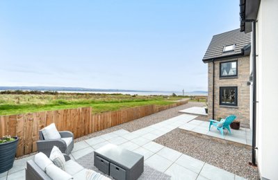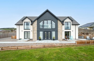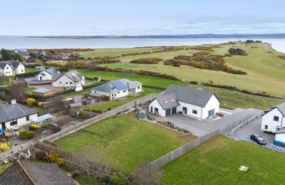 A stunning contemporary house enjoying spectacular views across Fortrose Golf Course towards the Moray Firth. Integral double garage with attic games room. Highly energy efficient with air source heat pump and solar gain.