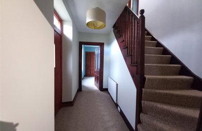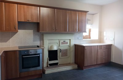 2 bedroom unfurnished detached house with Oil CH. Ground floor acc: hall, WC, utility room, kitchen, living room with woodburner. Upper floor leads to 2 bedrooms & bathroom with shower over bath. Parking & garden with open views to front & side. LARN1810017.