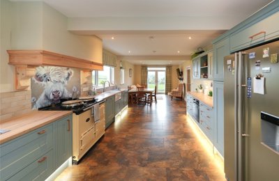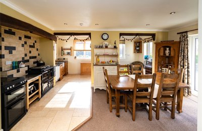 A superb detached family home in a sought after village with far reaching rural views. Open Plan Kitchen/Living / Dining. 1 reception room. 4 bedrooms. Large Garden. Detached Double Garage. Elevated site with plentiful parking.