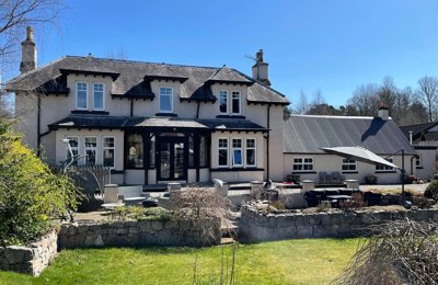 A traditional five bedroom house with one bedroom cottage in a delightful riverside setting in the heart of the Cairngorms National Park.