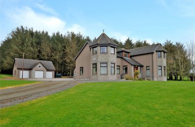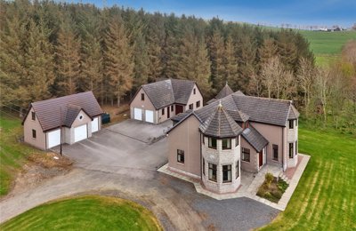 Bespoke 4 bedroom detached country home with panoramic Bennachie Hill views, including garden grounds, triple garage and large workshop