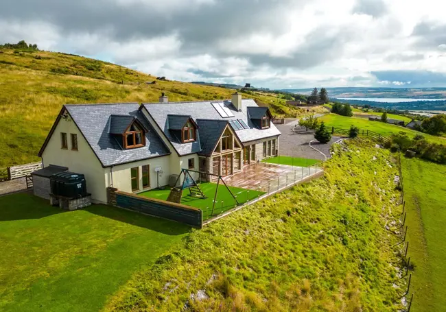 A modern country house in a peaceful setting with spectacular views over the Moray Firth. Garage with workshop and games room above. About 4.52 acres.
