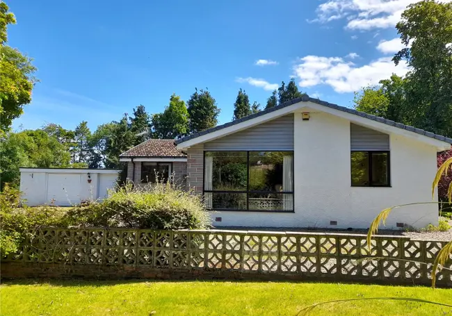 A charming detached bungalow situated in a tranquil woodland setting in Nether Auchendrane Estate. Ayr 4 miles. About 0.67 acres. 2 reception rooms, 4 bedrooms. Beautiful established and well-tended mature garden grounds. Garaging. Greenhouse. Complete rural seclusion within easy reach of Alloway.
