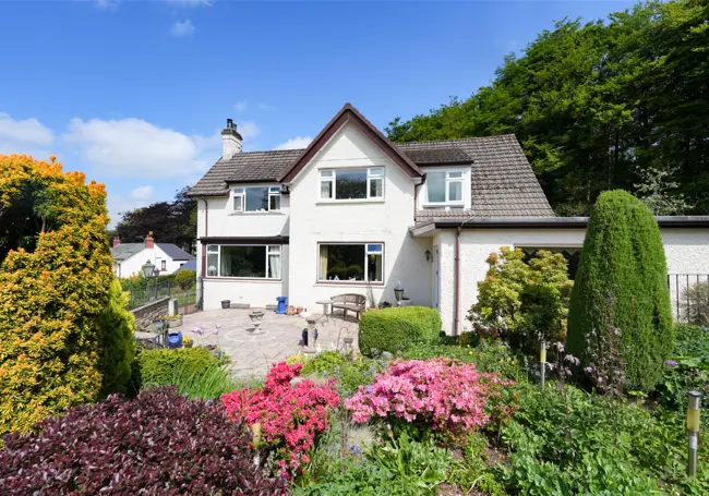 A rare opportunity to acquire a gracious elevated property in a highly sought after edge of town location. 3 reception rooms. Double Garage with studio over. Stunning mature garden. Panoramic views over the town and surrounding area.Camper van port.
