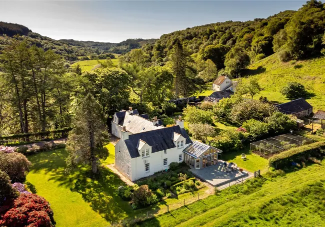 CLOSING DATE SET WEDNESDAY, 27 NOVEMBER 2024 AT 12 NOON. Unique and hidden residential and amenity estate. Charming traditional 5-bed house. Two apartment cottage. Useful outbuildings. Productive pasture, upland grazing, amenity woodland. Salmon fishing rights. About 143.77 Ha (355.26 Acres)