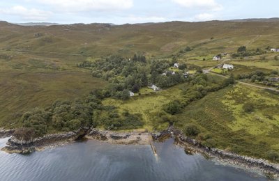 A decrofted five bedroom house and adjoining croft tenancy with two bedroom detached cottage in need of full renovation. A stunning waterside setting with far reaching views.