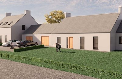 A superb plot at the edge of the sought after village of Kintessack. With full planning permission for a 4 bedroom house and detached double garage. Services on site.