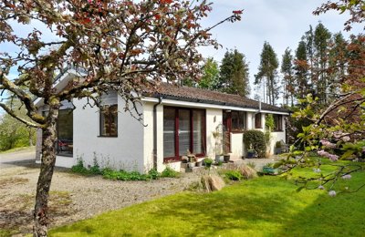 A charming detached bungalow situated in a tranquil woodland setting in Nether Auchendrane Estate. Ayr 4 miles. About 0.67 acres. 2 reception rooms, 4 bedrooms. Beautiful established and well-tended mature garden grounds. Garaging. Greenhouse. Complete rural seclusion within easy reach of Alloway.