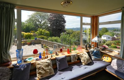 A rare opportunity to acquire a gracious elevated property in a highly sought after edge of town location. 3 reception rooms. Double Garage with studio over. Stunning mature garden. Panoramic views over the town and surrounding area.Camper van port.
