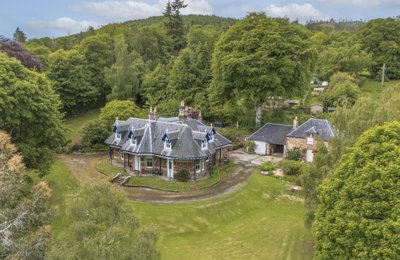 **OFFER UNDER CONSIDERATION** A delightful B listed house and former coach house in a conversation village. Beautiful, established grounds and framed views towards Knockfarrel Hill Fort.
